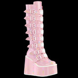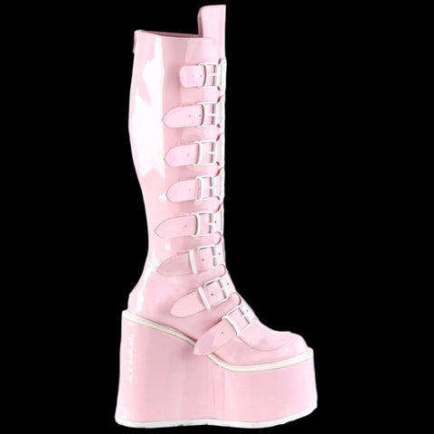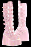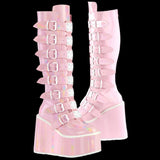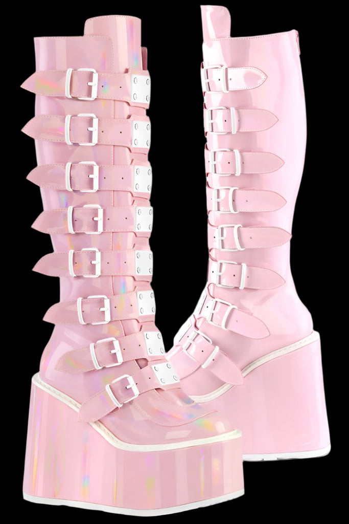 Don't settle for ordinary, embrace the extraordinary with the DemoniaCult SWING-815 Pink Holographic Boots!