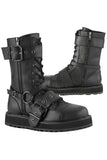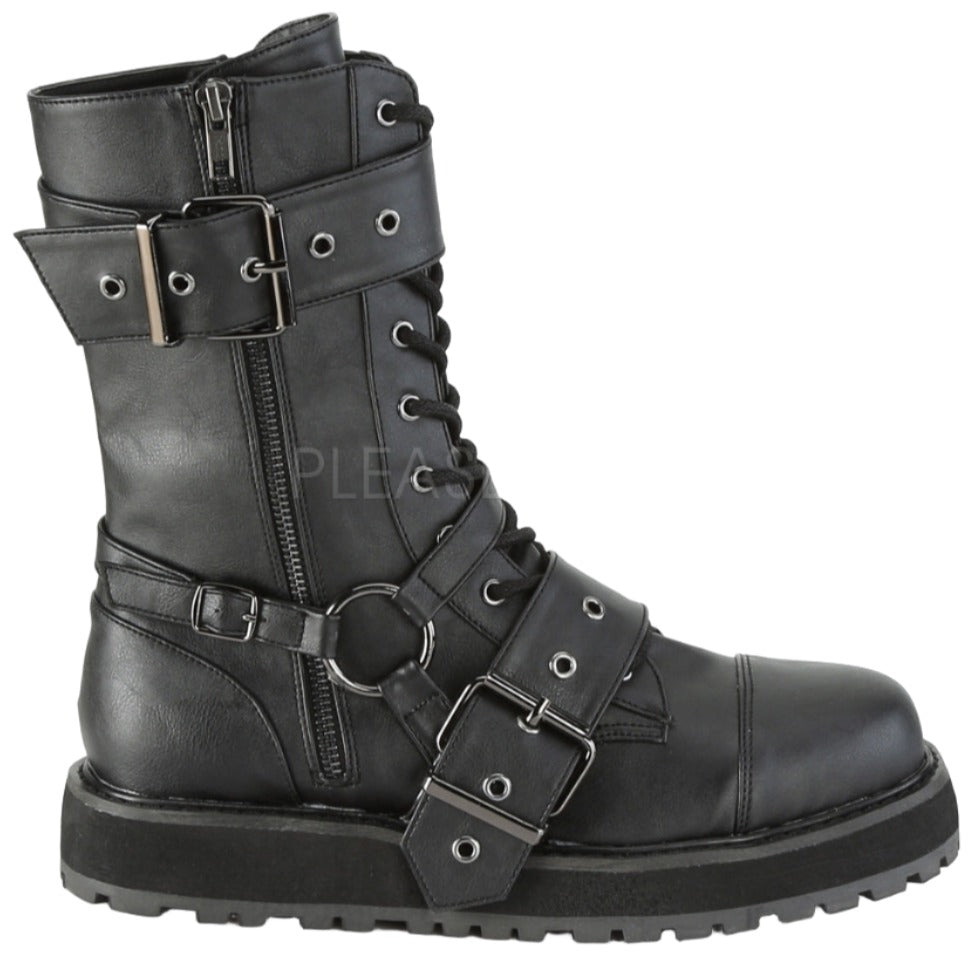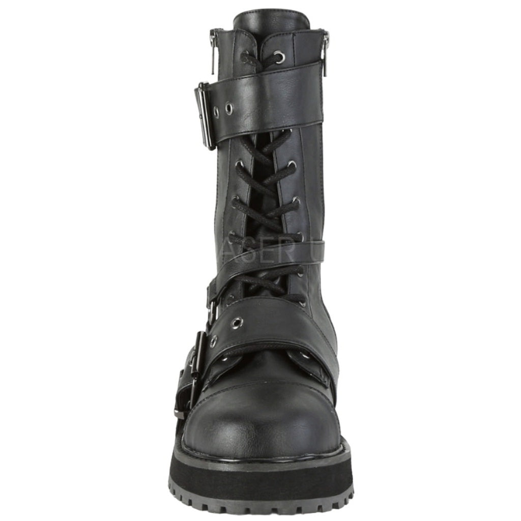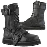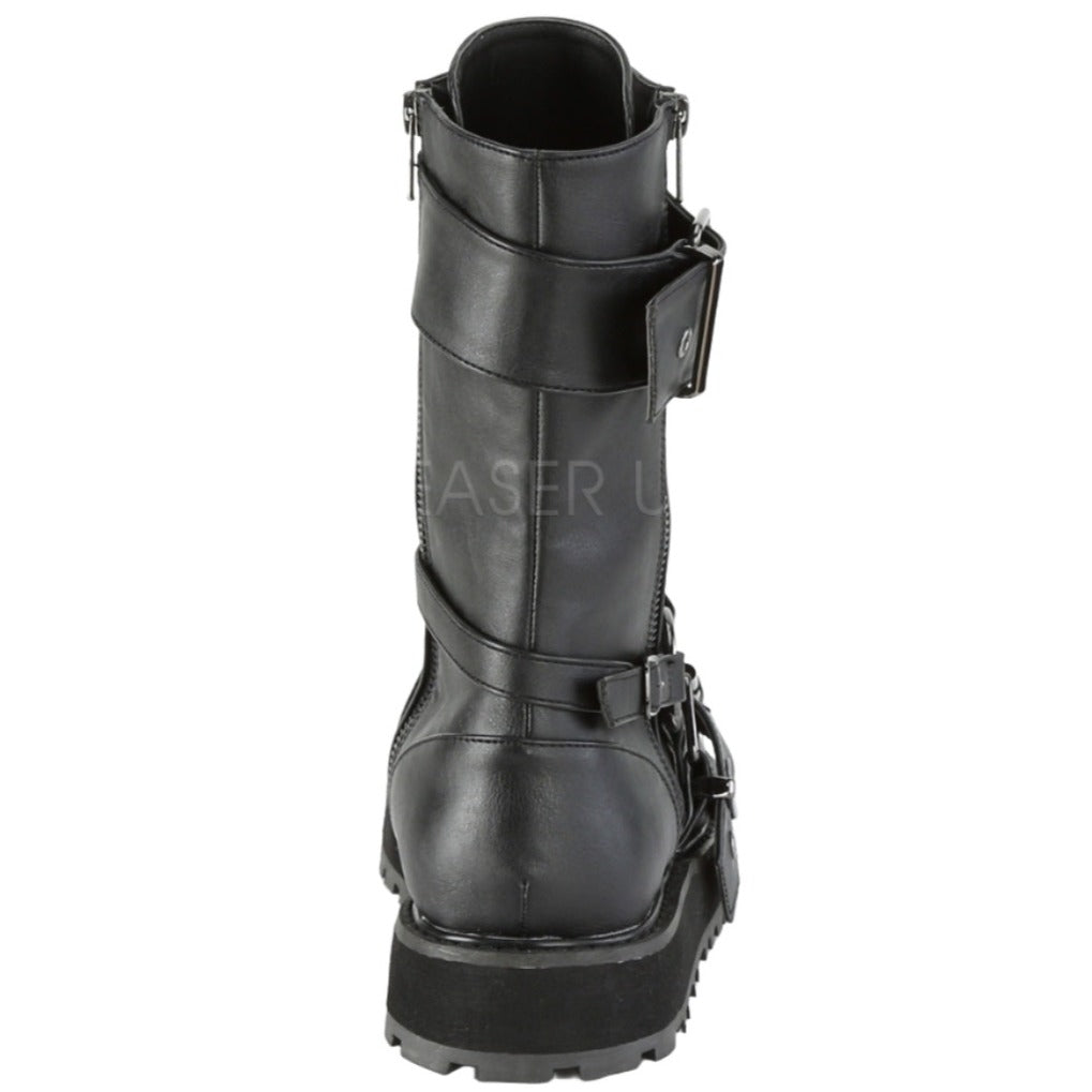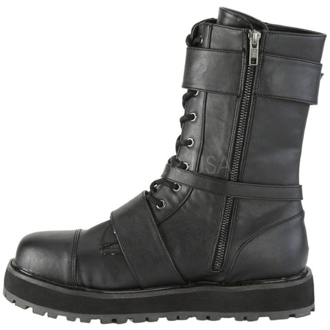 Keywords: DemoniaCult Valor-220 Boots, men's boots, black boots, vegan leather boots, platform boots, chunky heel boots, lace-up boots, lug sole boots, alternative fashion