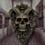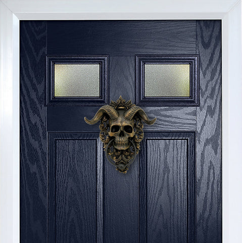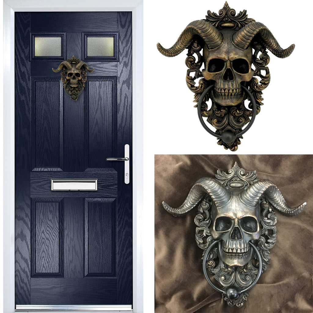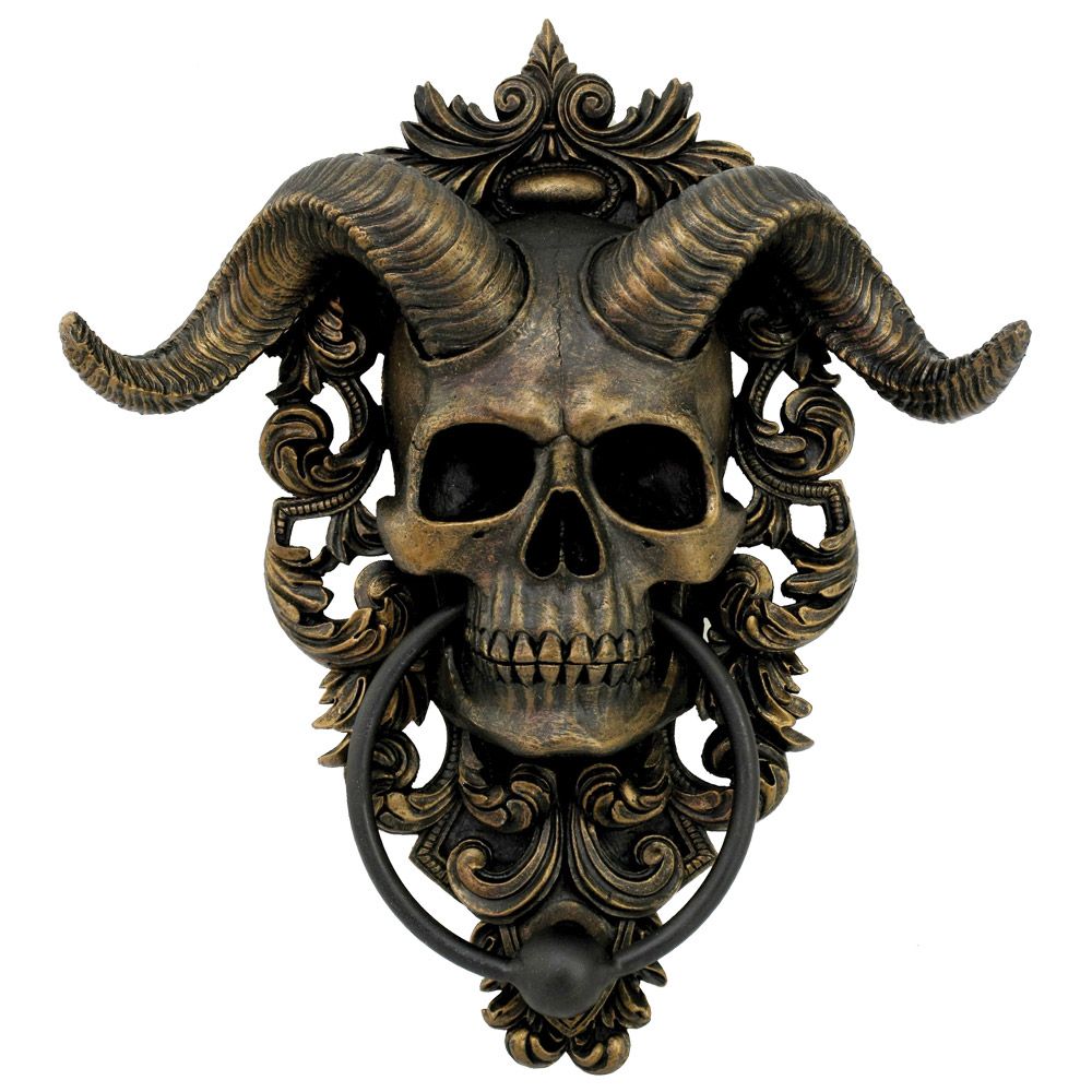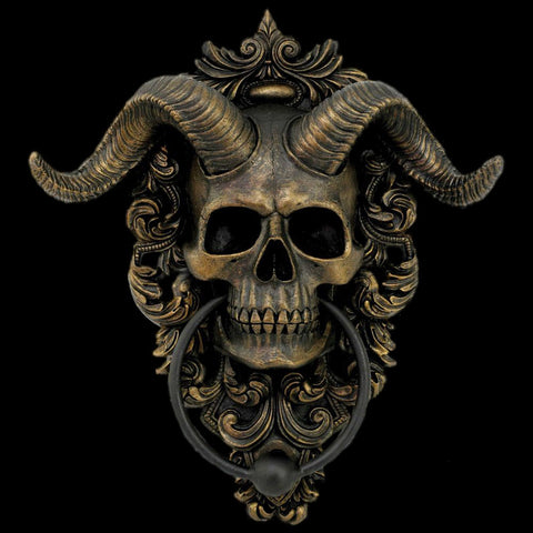 Diabolus, the Latin word for Devil, is portrayed in this occult Door Knocker. The bronze satanic skull complete with ram horns hangs on bronze ornate detailing, the door knocker suspended from the Devil's jaw. Cast in the finest resin before being painstakingly hand-painted, this piece would make the perfect addition to any Gothic home.