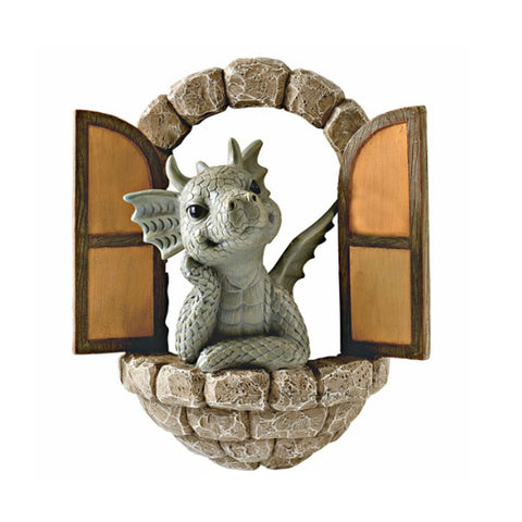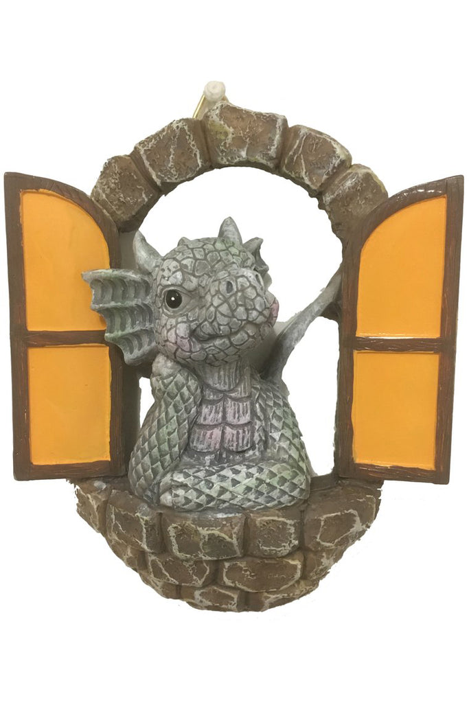 This cute dragon is gazing out of his open shuttered window. Ideal for adding a touch of magic to your home or garden - Hang him on a wall so he can see all around!