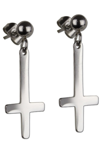 Lightweight and comfortable to wear, these earrings are ideal for everyday wear or adding a touch of rebellion to a night out. The inverted cross symbol can hold various meanings, from individuality to a challenge of conformity.