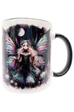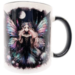 This mug showcases a beautiful and hauntingly elegant gothic translucent winged fairy. The vibrant colours of the artwork make the delicate design stand out, creating a striking contrast that draws the eye. A sleek black handle and interior perfectly complement the design, adding to its mysterious charm and making it a standout on any shelf or desk.