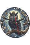 Fairytale Owl sitting on a tree branch In front of a full moon. Round Glass Clock 20cm diameter.