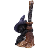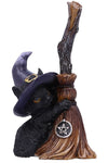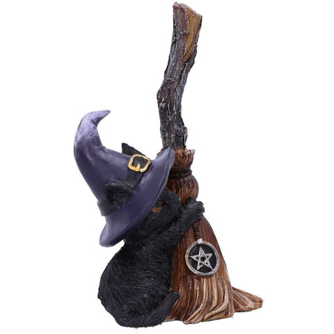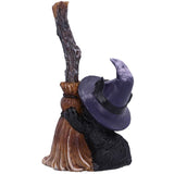 Feeling playful whilst clasping onto a small broom, she wears a crooked purple witch’s hat on her head. Cast in the finest resin before being hand-painted, she is ready to take flight making this the perfect gift for the charming witch in your life.