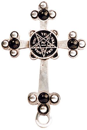 Constructed around the most profound symbol in the Lesser Key of Solomon, the creative light of the Holy Tetragramaton inscribed in the central pentagram, balances the dark energy of the surrounding cross in a perfect metaphor for Universal Polarity. Reputed to bestow upon its wearer the power to see darkness where others see light and Light where others see Darkness.