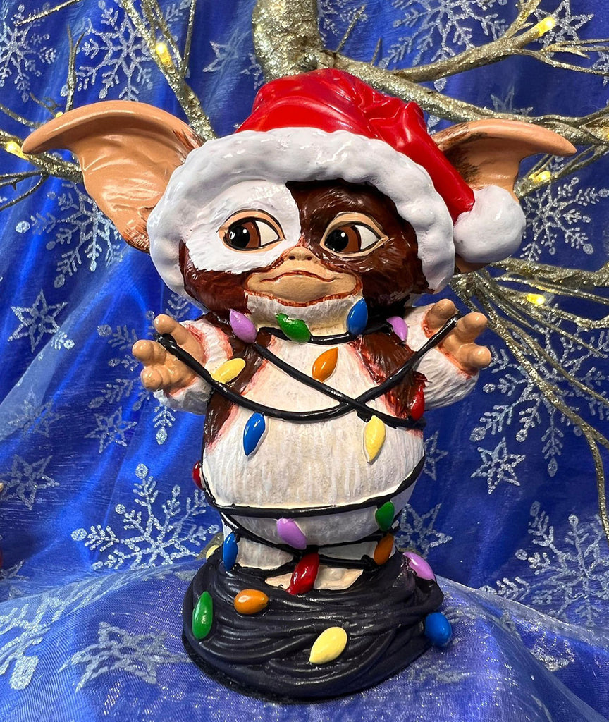 Here we see an innocent Gizmo tangled up in brightly coloured fairy lights, those mischievous Gremlins must've been playing games again! Ready to take up residence in a new home with a Santa hat placed on his head, this Gizmo is cast in the finest resin before being hand-painted and is guaranteed to become your most treasured festive figurine.