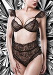 Crafted from sumptuous, transparent lace adorned with a captivating floral pattern, this lingerie set exudes a captivating blend of sophistication and allure. The bra, featuring attached wing sleeves, offers a touch of playful mystery, while the matching high-waist slip adds an irresistible touch of vintage glamour.