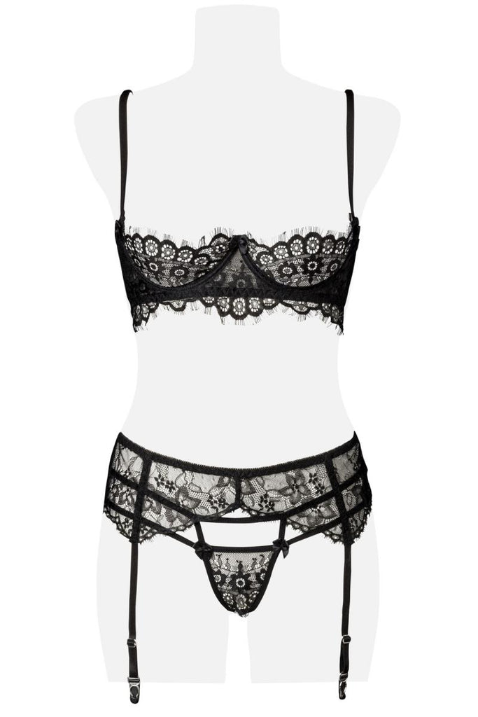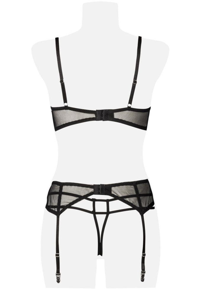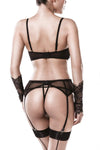 Feel confident and alluring in the underwired under bust bra, meticulously designed to offer both support and allure. The adjustable straps ensure a perfect fit, while the delicate lace and transparent fabric create an air of mystery, inviting exploration. Complete the look with the matching garter belt, adorned with adjustable suspenders for a touch of playful sophistication. The included arm warmers and string add an extra dimension of allure, making this set the ultimate indulgence.