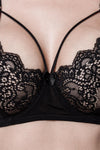 Crafted from the finest lace adorned with enchanting floral patterns, this bra set is a celebration of femininity. The cute bra, accentuated with ornamental bands, offers a perfect blend of elegance and playfulness. Paired with a matching high-waist panty, this set creates a harmonious and alluring silhouette.