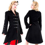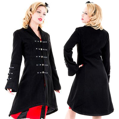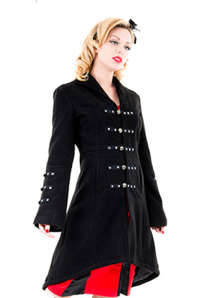 Ladies Reincarnation Black Coat from Hearts and Roses London. Military Style in a Soft Fabric, Coat is Fully Lined.