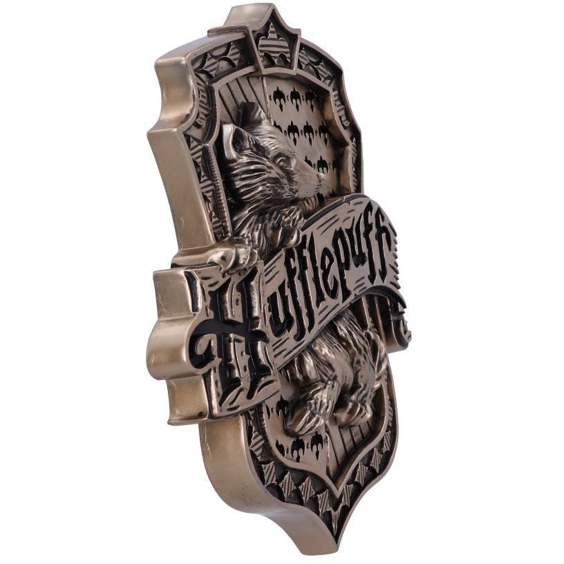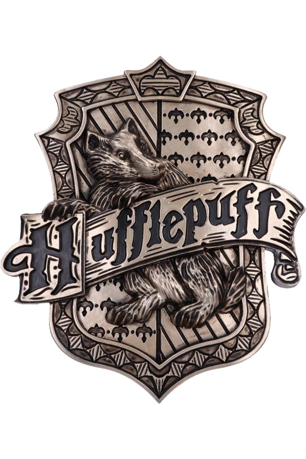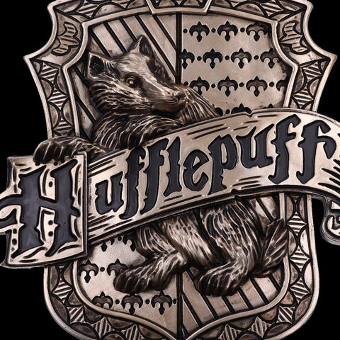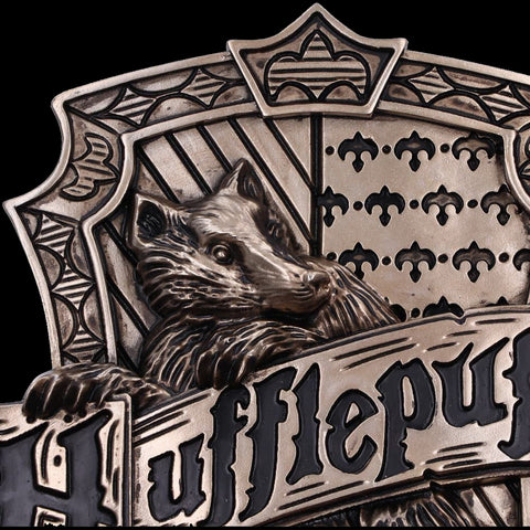 Discover the Wizarding World with this Officially Licensed bronze Harry Potter Hufflepuff Wall Plaque. Featuring a badger at the centre of this piece which is the emblematic animal of the Hufflepuff house, whose members are characterised by their values of loyalty, dedication and patience. This Wall Plaque really will be a showstopper in any display. Cast in the finest resin before being given a bronze finish, this piece is perfect for any Witches, Wizards, or Muggles alike!