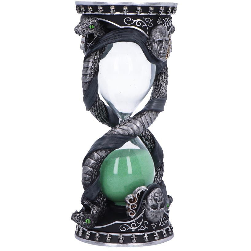 Discover the Wizarding World with this Officially Licensed Harry Potter Voldemort Sand Timer. Paying homage to the most infamous dark wizard to have lived, Lord Voldemort. Finely crafted to feature his sinister presence, whilst also detailing Nagini, his pet snake. This piece is not only a functional sand timer, but also a striking collector's item which will bring enchantment and dark mystique into any space.