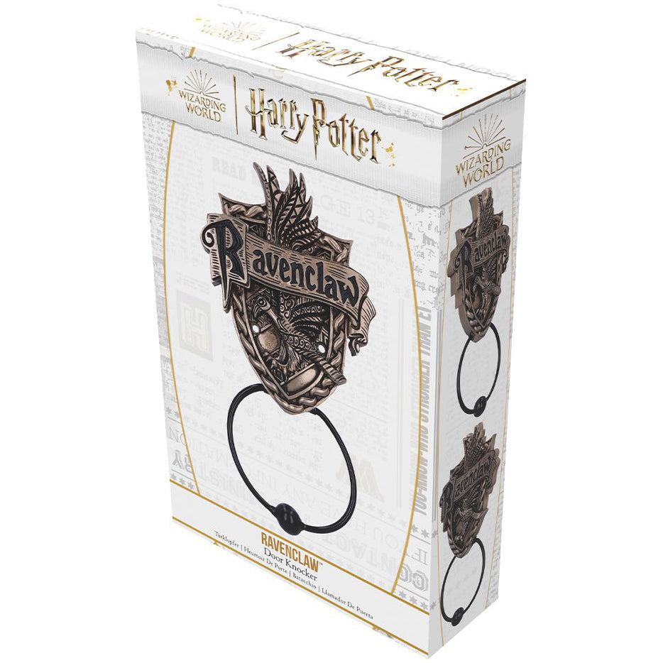 Discover the Wizarding World with this Officially Licensed Bronze Harry Potter Ravenclaw Door Knocker. Featuring a raven at the centre of this piece which is the emblematic animal of the Ravenclaw house, whose members are characterised by their wit, wisdom and willingness to learn. Cast in the finest resin before being expertly hand-painted, the knocker part of this piece is a solid metal ring, weighted to provide a loud knock. Making this the perfect addition to any wizarding collection which can be enjoyed by Witches, Wizards and Muggles alike!