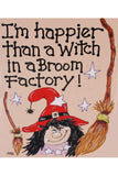 - Witty message: "I'm Happier Than a Witch in a Broom Factory"