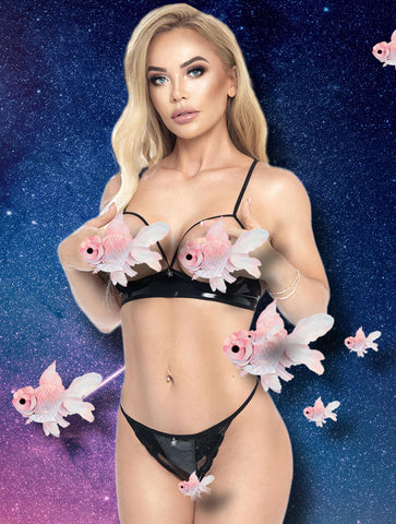 Indulge in a truly provocative style with the Irall Erotic Bira Set, a striking combination of high-quality wet-look fabric and delicate lace. This set includes an "open" bodice and a matching thong, crafted for a sensational and alluring look.