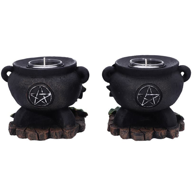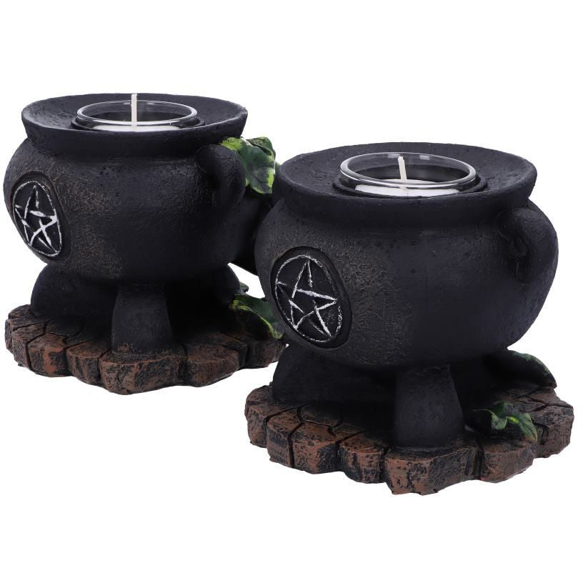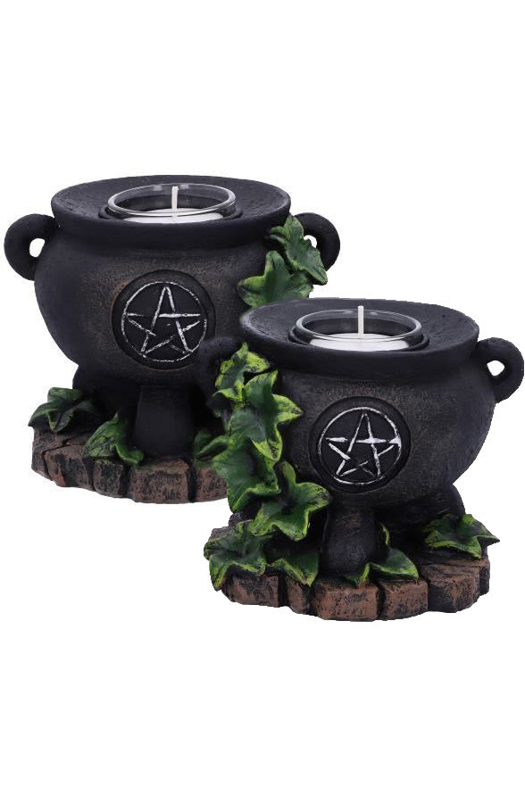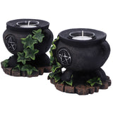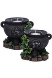 Set of Two Ivy Cauldron Witches Candle Holders.