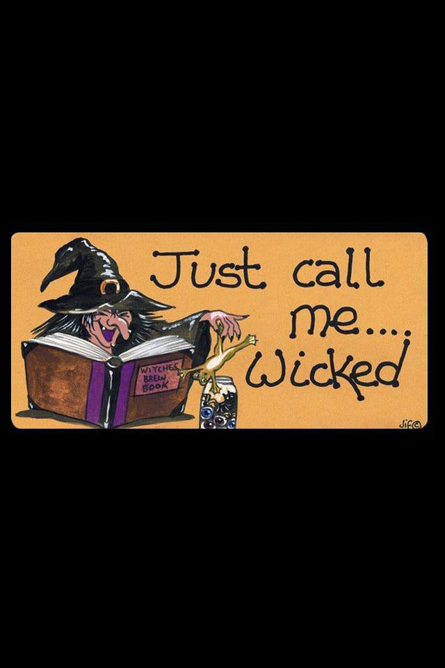 - Design: Mischievous smiley face with "Just Call Me Wicked" text