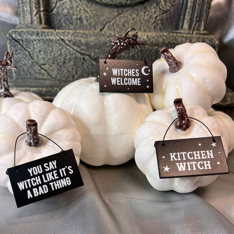 These petite, witchy hanging signs may be small, but they still manage to cast their spell on anyone who passes. Phrases include; 'You say witch like it's a bad thing', 'Don't let anyone steal your magic', 'Home is where you hang your broom', 'Kitchen witch', 'Coven meeting in progress' and 'Witches welcome'.