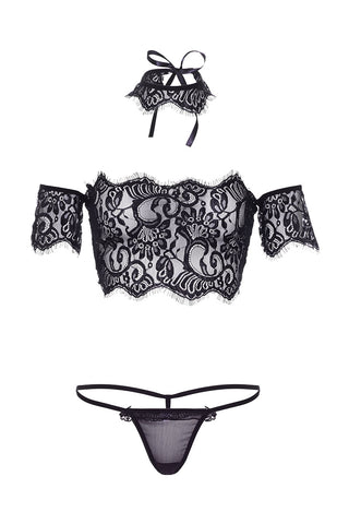 Playful Allure: The Leg Avenue Lace Crop Top with Choker and G-String Set.