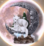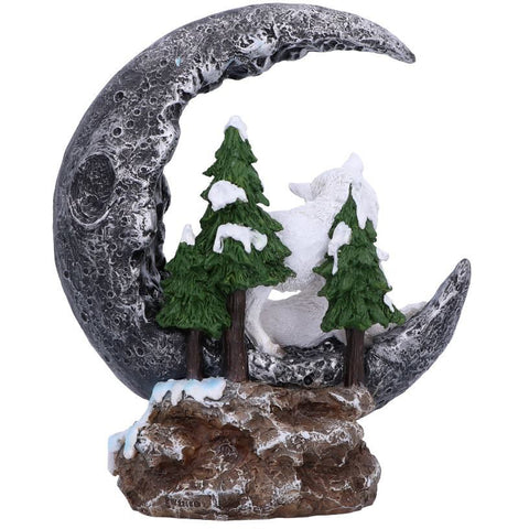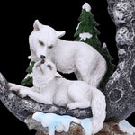 Capturing the serene beauty of nature with two majestic wolves perched upon a crescent moon, surrounded by a snowy landscape. This captivating piece has been cast in the finest resin before being expertly hand-painted and is the perfect addition to any fantasy collection.