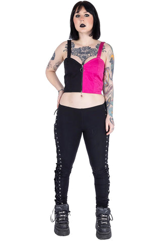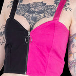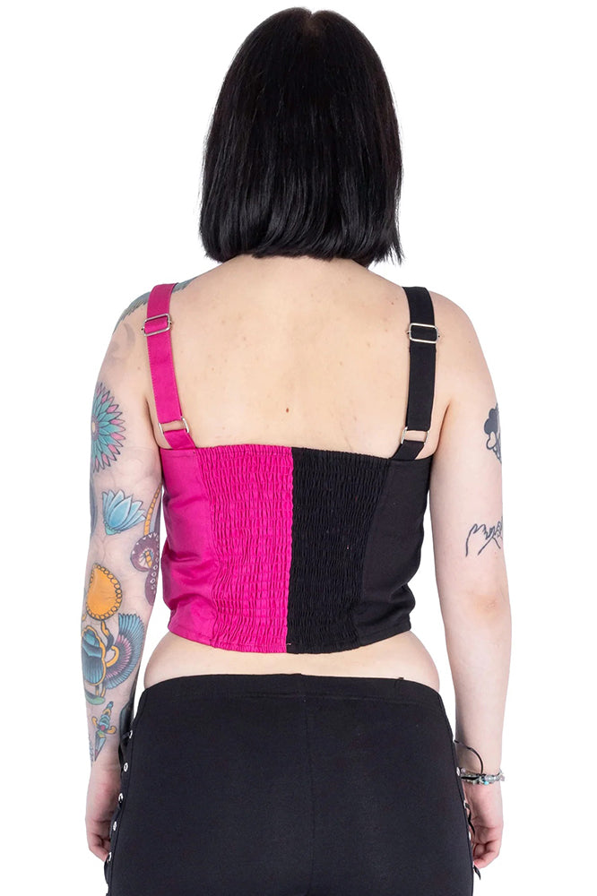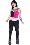 Keywords: Vixxsin, Manic Top, black and pink, crop top, cotton twill, festival fashion, edgy style, women's tops, fashion tops, comfortable top, adjustable straps, bold colors