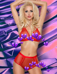 Gloria is a tempting 2 piece set from the Gold & I collection from Me Seduce. It includes a bra and high waist brief which are both decorated with see-through mesh and have a tempting braided ring feature. The briefs have an elasticated waistband and there is also a plain mesh on the back just like the front. The back of the bra has one adjustable hook. Gloria arrives packaged in her own Me Seduce box.