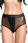Ina is a sexy pair of knickers from the Bond Me Collection from Me Seduce. Desirably made from faux-leather and tulle mesh. The waistband is slightly elasticated and made from faux-leather. There’s also a panel in the middle of the knickers down to the crotch with faux-leather. Tulle mesh sits on the rest of the knickers and cheekily exposes the bottom. Adjustable suspender straps are found at the sides this item would look great with the ST01 stockings. Item comes packaged in a Me Seduce box.