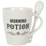 This bewitching mug and spoon set will add a pinch of magic to every cuppa. Style features 'Morning Potion' text and matching teaspoon with a pentagram design that fits perfectly in a slotted handle.