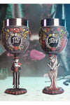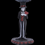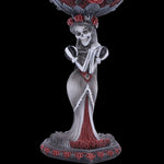 As the stem of the goblet, this skeleton wears a charming tuxedo and black top hat. While the bowl is adorned with ornate patterns and roses, alongside a prominent 'Mr' in the centre. Cast in high-quality resin before being expertly hand-painted, this piece is the perfect way to add a touch of gothic romance to any wedding day.