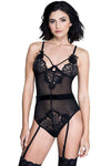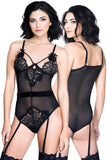 Unleash Enchanting Allure: The Music Legs Eyelash Lace Cups Black Garter Teddy