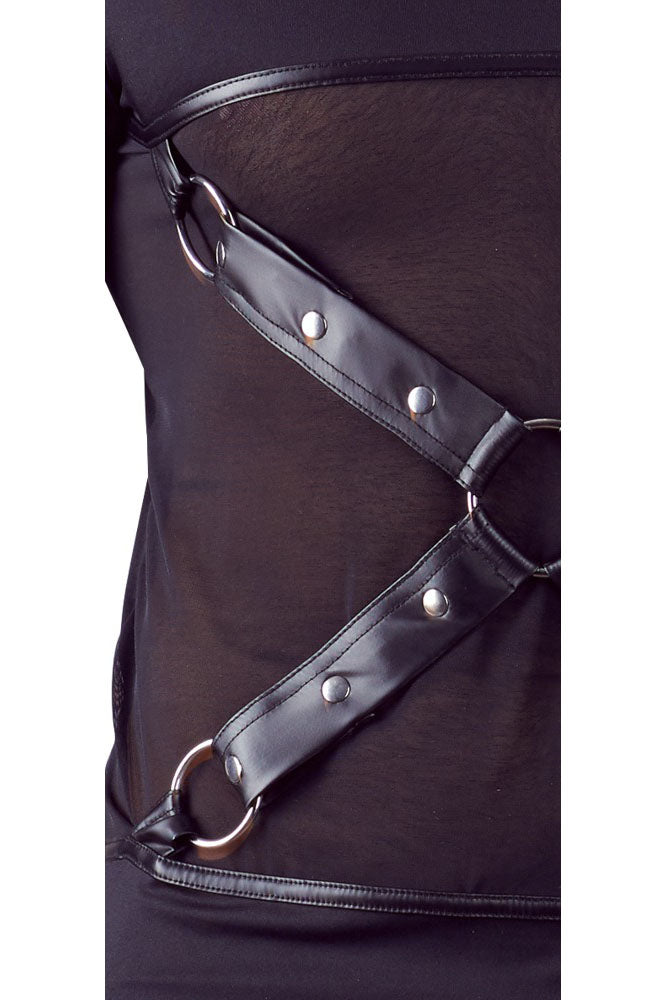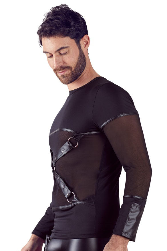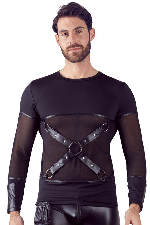 With stylish chest harness! Long Sleeve in a matt look, with stylish Powernet insert in the front that lets the muscles shine through. The detachable chest harness sets beautiful and exclusive details for the viewer, just like seductive invitations that make you want more.