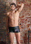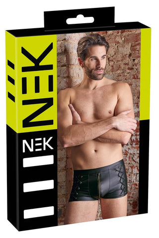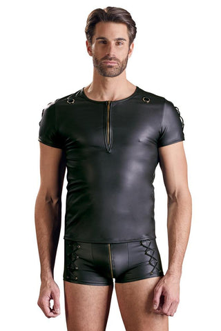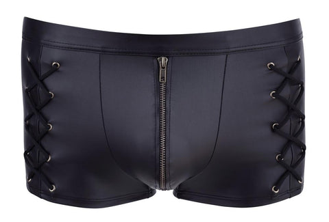Distinctive male matte look! Delicate, black pants with an underlaid brass zipper in the front. With prominent lacings on the sides. Tight-fitting, elastic fit for an ideal wearing comfort.