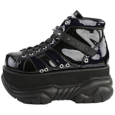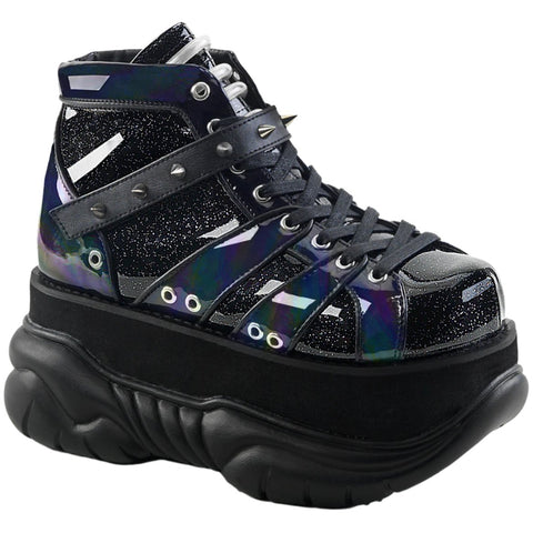 3" (76mm) Platform Lace-Up Shoe Featuring Hook N' Loop Ankle Strap with Cone Studs and UV Reactive Tubbing on Tongue.