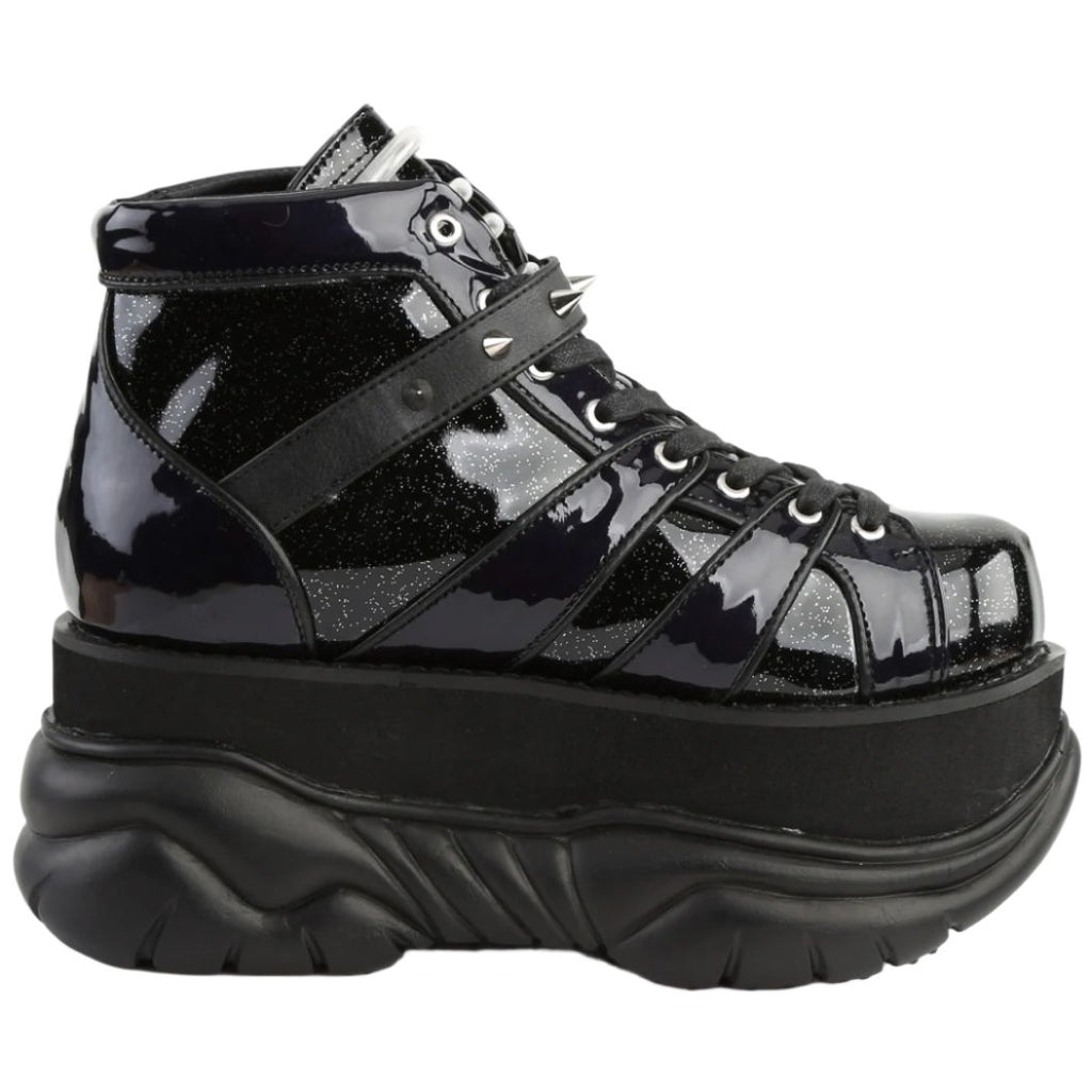 The DemoniaCult NEPTUNE-100 Men's Black Glitter-Silver Vegan Boots are more than just footwear; they're a statement piece that empowers you to embrace your individuality and conquer the world with confidence and audacious style. Order yours today and redefine the meaning of men's footwear!