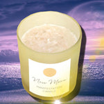 Ignite your desires and manifest your heart's desires with our captivating New Moon Wild Orange Manifestation Candle. The refreshing scent of wild orange is known to invigorate the senses and promote positivity, creating the perfect atmosphere for intention setting. The candle is housed in a luminous yellow frosted glass vessel, accented by a shimmering metallic lid, and infused with pure intentions through the inclusion of clear quartz crystal chips. As the candle burns, these precious crystals gradually reveal themselves, ready to be repurposed for your own crystal rituals or decorative displays.