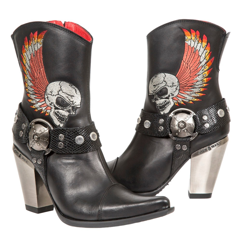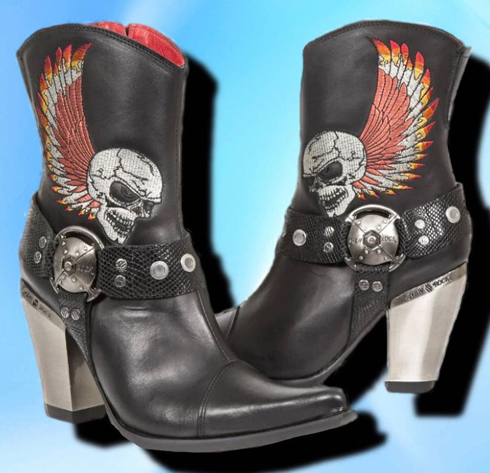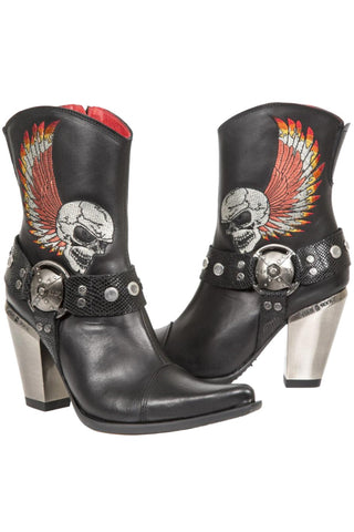 New Rock M.BULL Ladies Cowboy Boots with Winged Skull