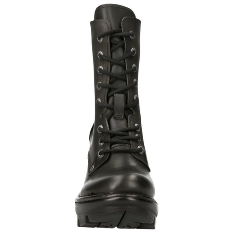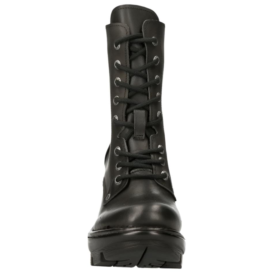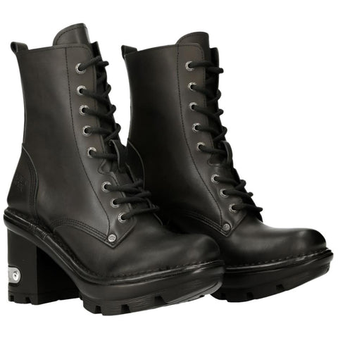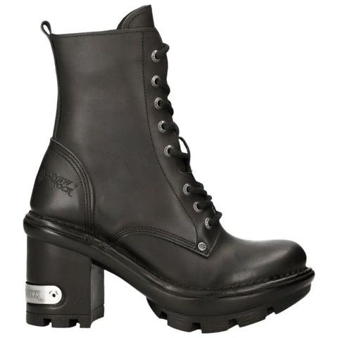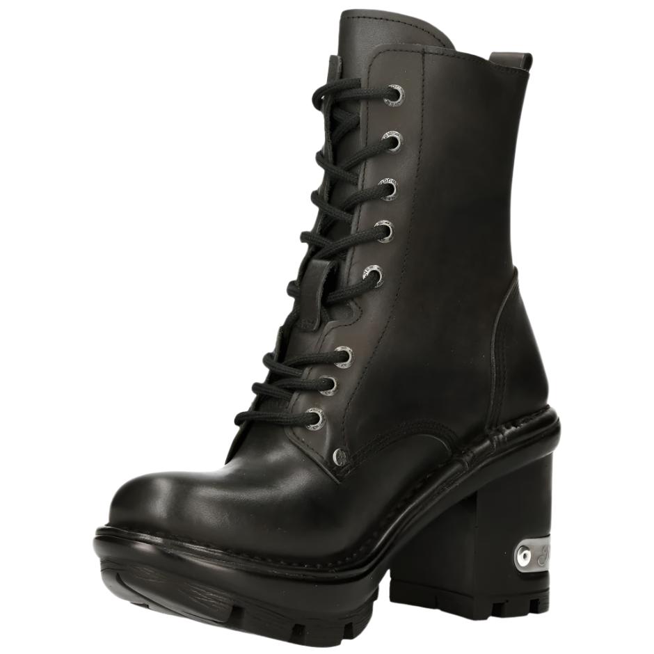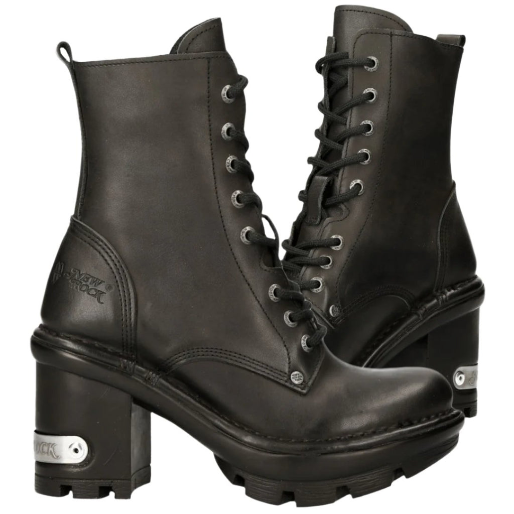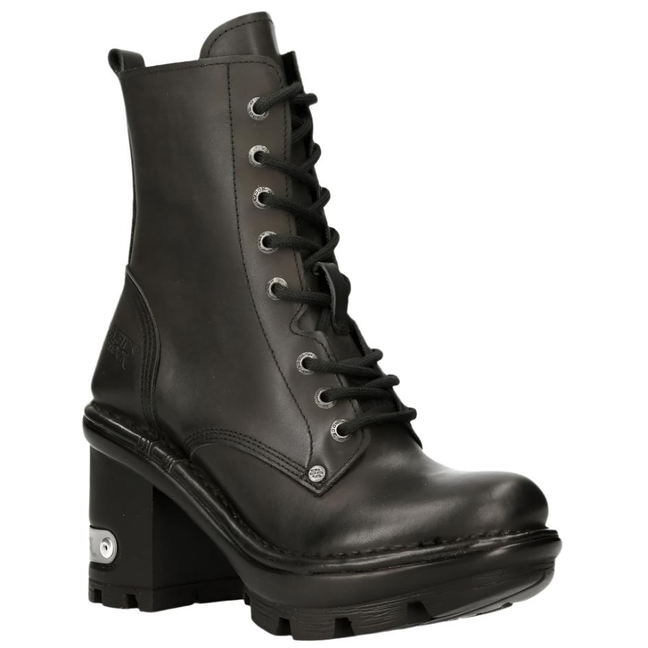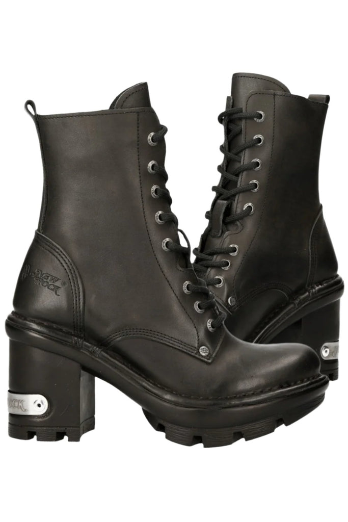 Step into these boots and redefine the classic ankle boot. The M.NEOTYRE07X-S1 features a familiar silhouette – think lace-up closure and a low-cut style – reinterpreted with a touch of New Rock's signature flair. This unexpected twist ensures these boots stand out from the ordinary. Crafted from genuine black leather, the M.NEOTYRE07X-S1 offers a luxurious feel and long-lasting wear, ensuring they become a treasured part of your footwear collection.