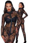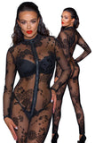 Noir Handmade, tulle jumpsuit, sheer jumpsuit, sexy jumpsuit, bodycon jumpsuit, women's jumpsuit, designer jumpsuit, luxury fashion, evening wear, party wear, clubwear, bold outfit, confident style, seductive look, body positive fashion, high-quality clothing, tulle, velvet, jumpsuit with zip
