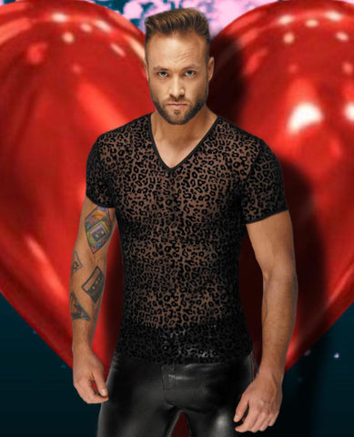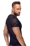 Sheer, animalistic look! Accentuated shirt from Noir made from delicate transparent powernet with an elegant leopard velvet flock print. Soft and stretchy for great comfort. The half-sleeve and small V-neckline are carefully trimmed.