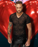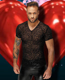 Noir Handmade Leopard Flock V-neck T-Shirt.