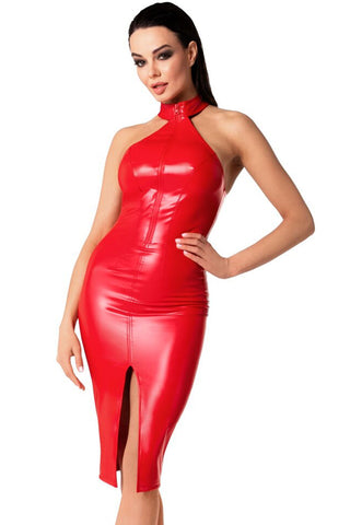 Sexy, bright red dress that is comfortable to wear! The cold shoulder, knee-length dress from Noir is in a tapered design. It is made out of powerwetlook that clings sexily to the body. It is in a great colour: bright red. It is also soft and stretchy for a very comfortable fit. There is a full-length zip from the stand-up collar to the long slit.