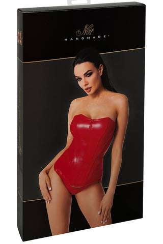 • Material: Crafted from stretchy Power Wetlook fabric, this corset offers a sleek, matte finish that balances just the right amount of subtle shine. The material contours to your body, ensuring a comfortable yet figure-hugging fit that flatters your silhouette.