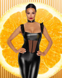 Noir Handmade Powerwetlook Tulle Panel Catsuit