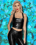 Noir Handmade, snake print top, wetlook top, women's fashion, stylish top, edgy fashion, versatile top, zipper top, luxury top, designer top.