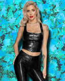 Noir Handmade Snake Print Wetlook Top: Edgy Elegance