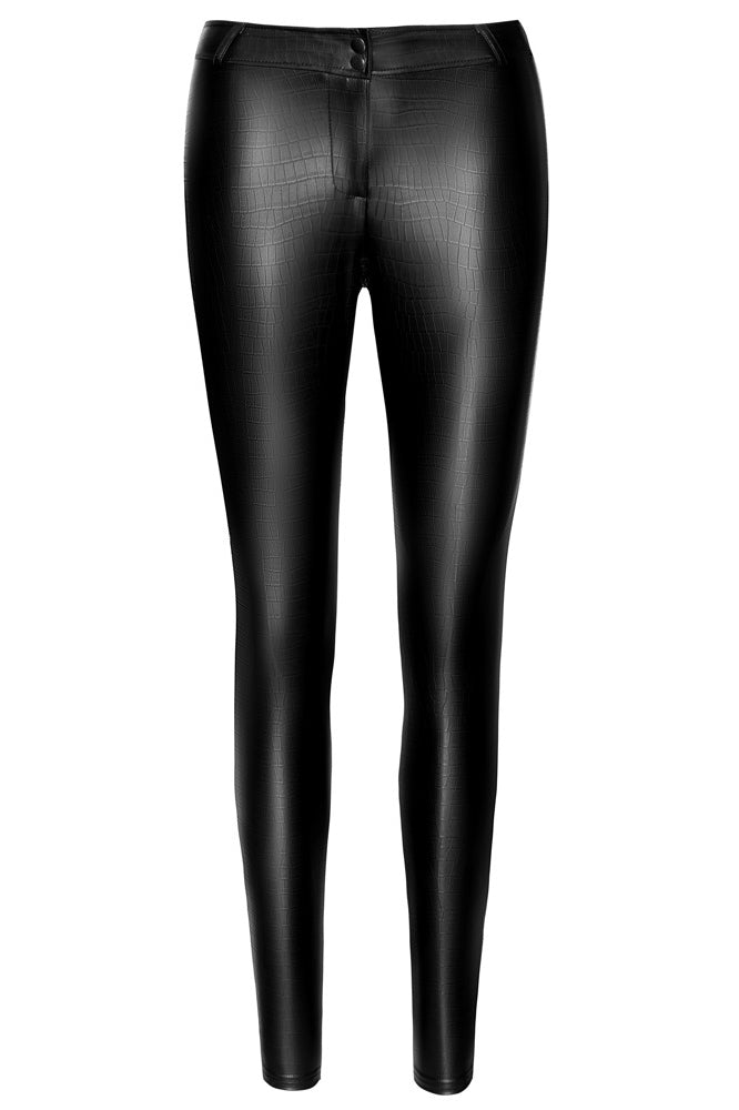 Exclusive look - exclusive style! Slim-fit trousers from Noir in trendy a matte shiny snakeskin look. Fantastically elastic for a close fit and high comfort. With press stud and concealed zip fastening at the front, waistband with belt loops. Two back patch pockets. The clever detail: the small 2-way zip at the crotch!