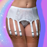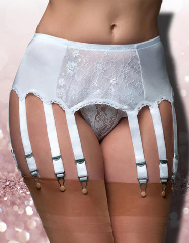 Nylon Dreams 12 Strap Suspender Belt Lace White