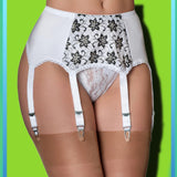 Nylon Dreams 6 Strap White Flower Lace Pattern Suspender Belt.