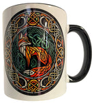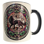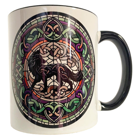 This stunning set of six mugs is adorned with intricate Celtic knotwork designs, each featuring a captivating emblem from the Celtic bestiary: