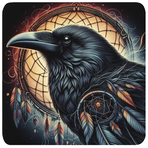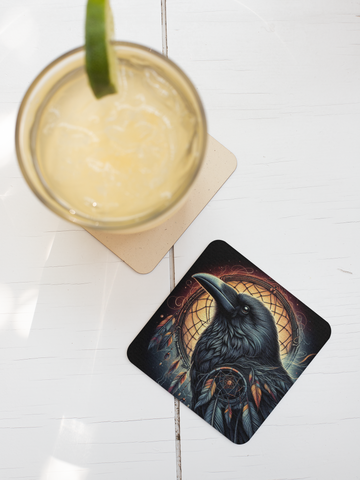 Cork Backed Coaster featuring a stunning Raven and Dreamcatcher design.